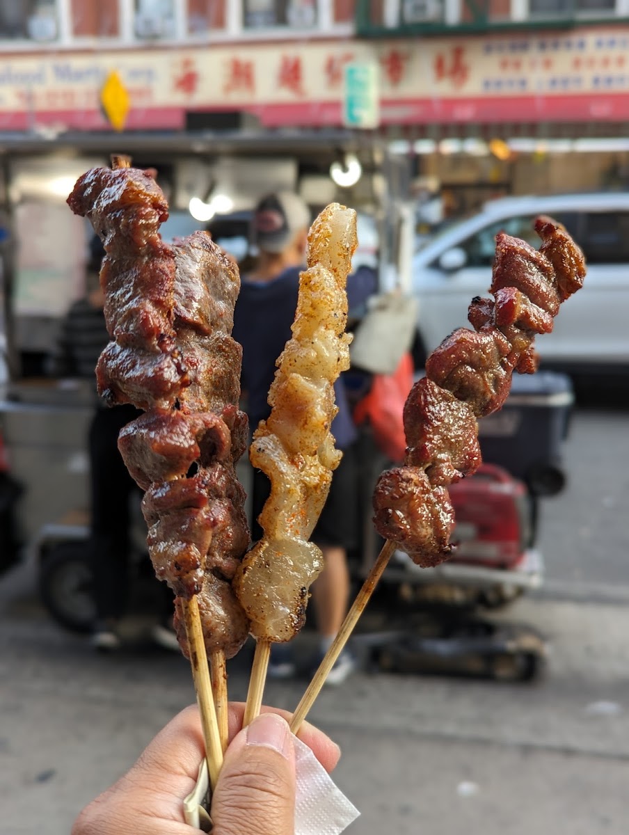 In terms of pricing, it’s extremely reasonable for the quality of food you’re getting. The skewers are affordable, and you can easily build a satisfying meal without breaking the bank. Plus, the cart is conveniently located in a bustling area of New York, making it the perfect spot for a quick lunch or dinner while you’re out exploring the city.